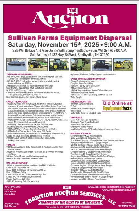 Tradition Auction Services, LLC, feels the best possible service to our customers is a positive experience by all involved in the auction itself. With this in mind, explicit web coverage is given to your auction with ease of access for all viewers.